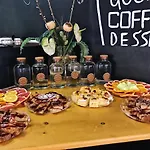 Този хотел в Слънчев бряг включва ресторант, който сервира вегетариански закуски. Ресторантът на място предлага разнообразна интернационална кухня на просторна тераса. Die Party Hutte, сервиращ международни специалитети, е на около 5 минути пеша.